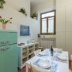 Recentemente ristrutturato con grande attenzione ai dettagli, l'appartamento combina arredi di design raffinati con il fascino degli elementi originali, come il bellissimo pavimento in cotto e gli affreschi sul soffitto. La palette di colori caldi e terrosi crea un’atmosfera accogliente e invitante.